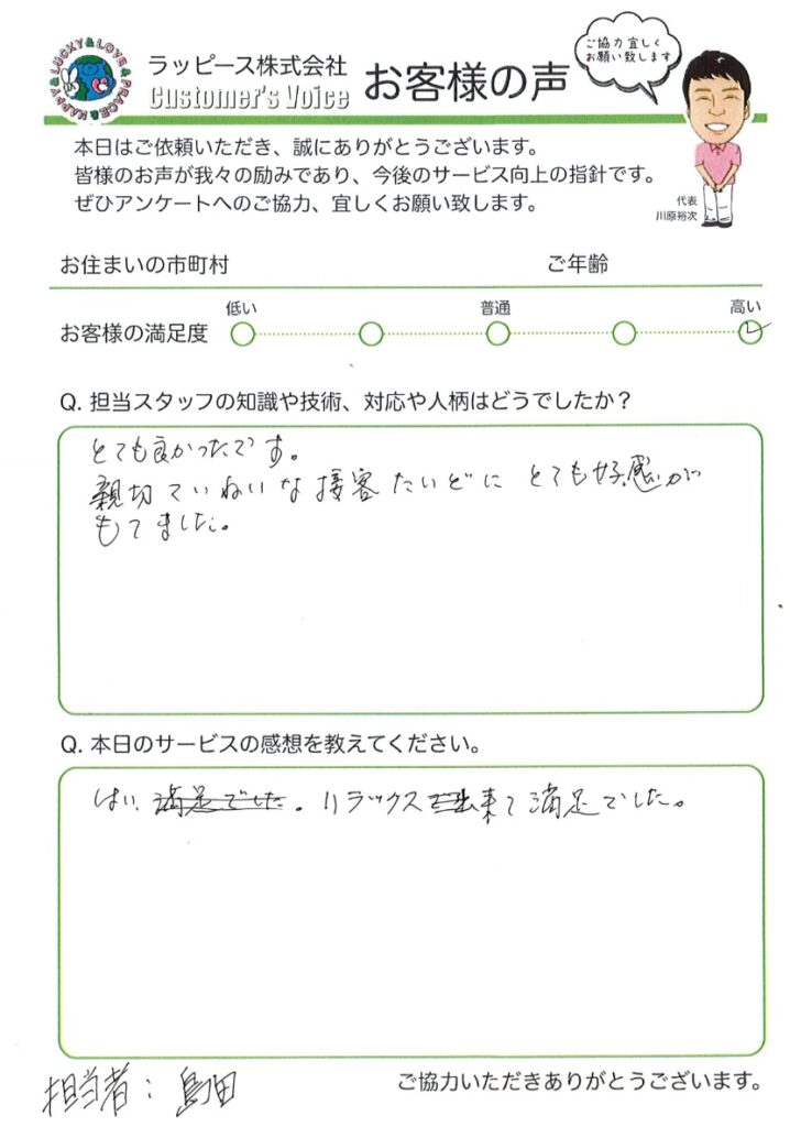 住まい年齢非公開|親切ていねいな接客態度に好感 2024 7/30 お客様の満足度 ★★★★★ 担当スタッフについて とても良かったです。 親切ていねいな接客態度にとても好感がもてました。 サービスについて はい、リラックスできて満足でした。 買取り 買取り よかったらシェアしてね! URLをコピーしました! URLをコピーしました! 関連記事 高浜市 48歳|めちゃめちゃいい!すごくお得感があった 大分市 74歳|お客様の気持ちになってくれた 高松市 50歳|出会えたことに感謝します 高浜市 77歳|息子の様に接してくれた 高浜市 51歳|色んな商品のご相談にのってくださり助かりました 高浜市 77歳|最高 がんばりや!! 高浜市 43歳|知識、対応共に素晴らしかったです 愛媛県愛南町(56歳) お客様目線で思った以上の金額を頂きました