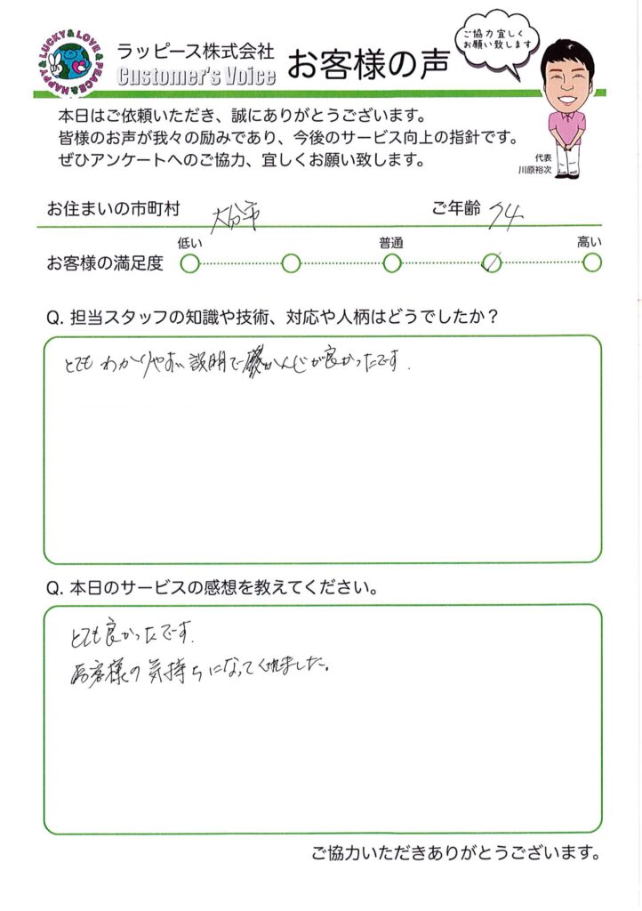 大分市 74歳|お客様の気持ちになってくれた