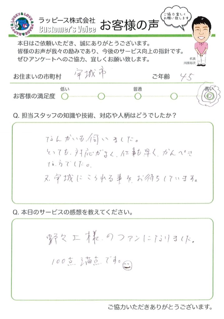 熊本県宇城市(45歳) 対応が良く仕事も早く完璧 2024 7/30 お客様の満足度 ★★★★★ 担当スタッフについて 何回も伺いました。 とっても対応がよく、仕事も早く、完璧な方でした。 又、宇城にこられる事をお待ちしています。 買取りサービスについて 野々上様のファンになりました。 100点満点です! 買取り よかったらシェアしてね! URLをコピーしました! URLをコピーしました! 関連記事 高浜市 48歳|めちゃめちゃいい!すごくお得感があった 大分市 74歳|お客様の気持ちになってくれた 高松市 50歳|出会えたことに感謝します 高浜市 77歳|息子の様に接してくれた 高浜市 51歳|色んな商品のご相談にのってくださり助かりました 高浜市 77歳|最高 がんばりや!! 高浜市 43歳|知識、対応共に素晴らしかったです 愛媛県愛南町(56歳) お客様目線で思った以上の金額を頂きました