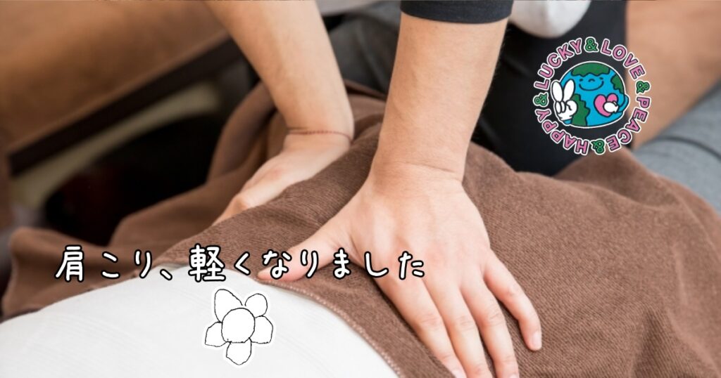 お客様の満足度 ★★★★★ 担当スタッフについて 肩こり、軽くなりました。 本日のサービスについて はなまる -
