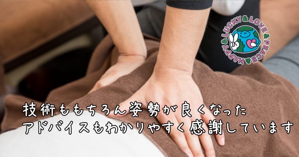 お客様の満足度 ★★★★★ 担当スタッフについて 技術はもちろん、姿勢が良くなった気がします!! 姿勢も意識するようになりました!! アドバイスもわかりやすく、本当に感謝しています! これからもお世話になります😃 本日のサービスの感想 はなまる
